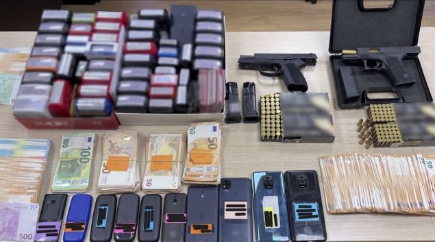 Συνολικά βρέθηκαν και κατασχέθηκαν 8 πολυτελή αμάξια πιστόλια κινητά, ενώ δεσμεύτηκαν 1.556.333,82 ευρώ από τραπεζικούς λογαριασμούς 22 επιχειρήσεων.