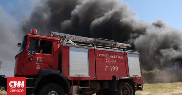 Κινητοποιήθηκαν συνολικά 20 πυροσβέστες με 8 οχήματα ώστε η πυρκαγιά που ξέσπασε σε αποθήκη με παλέτες και ξυλεία να μην λάβει διαστάσεις, λόγω του εύφλεκτου υλικού.