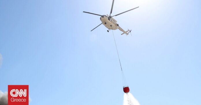 Στο σημείο επιχειρούν 32 πυροσβέστες με 10 οχήματα, 2 πεζοπόρα τμήματα, 1 ελικόπτερο και 2 αεροσκάφη.