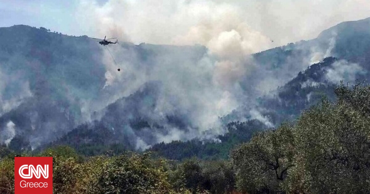 Στο σημείο βρίσκονται 20 Πυροσβέστες με 5 οχήματα, μία ομάδα πεζοπόρου τμήματος και 5 αεροσκάφη. Η φωτιά εκδηλώθηκε σε δύσβατη περιοχή και καίει ξερά χόρτα.