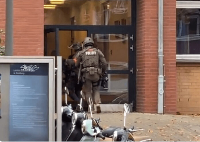 Σύμφωνα με την ανακοίνωση της Αστυνομίας του Αμβούργου, ήδη στο σημείο βρίσκονται οι ειδικές δυνάμεις, που αναζητούν τους εισβολείς. Είναι μέχρι τώρα ασαφές εάν πρόκειται για μαθητές του σχολείου.