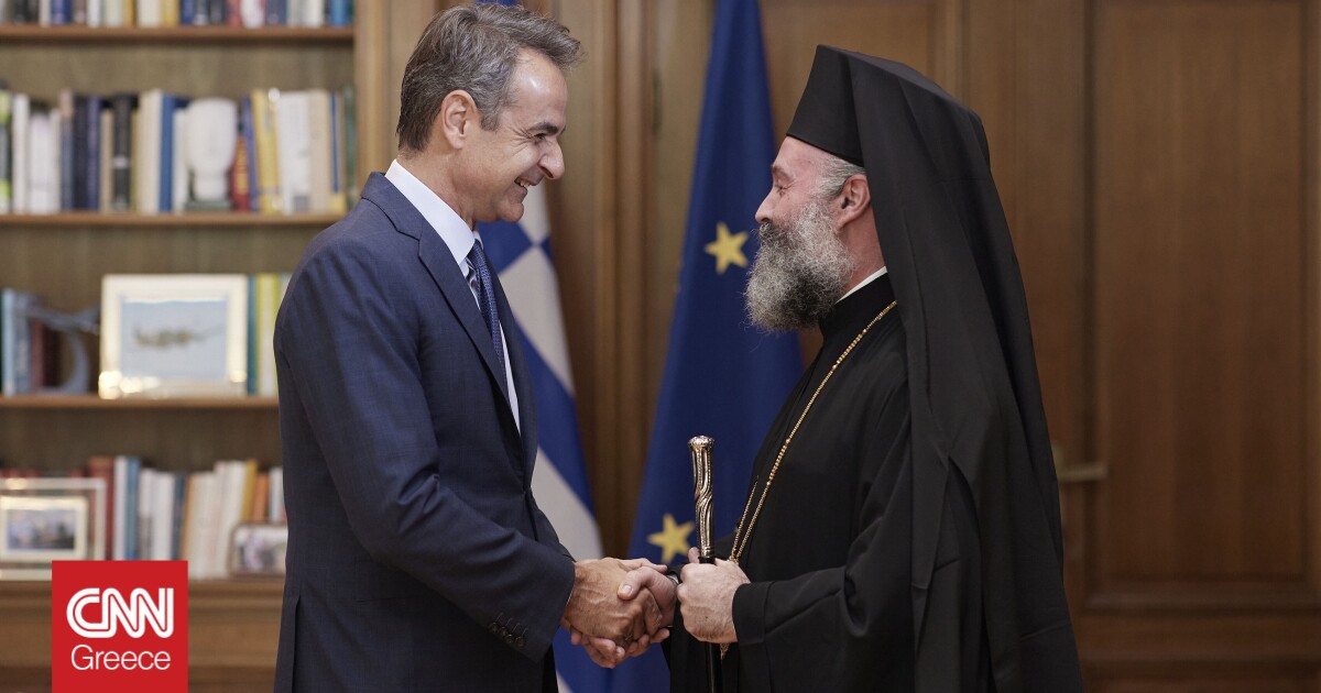 O πρωθυπουργός Κυριάκος Μητσοτάκης συναντήθηκε το απόγευμα της Τρίτης στο Μέγαρο Μαξίμου με τον Αρχιεπίσκοπο Αυστραλίας κ.κ. Μακάριο.