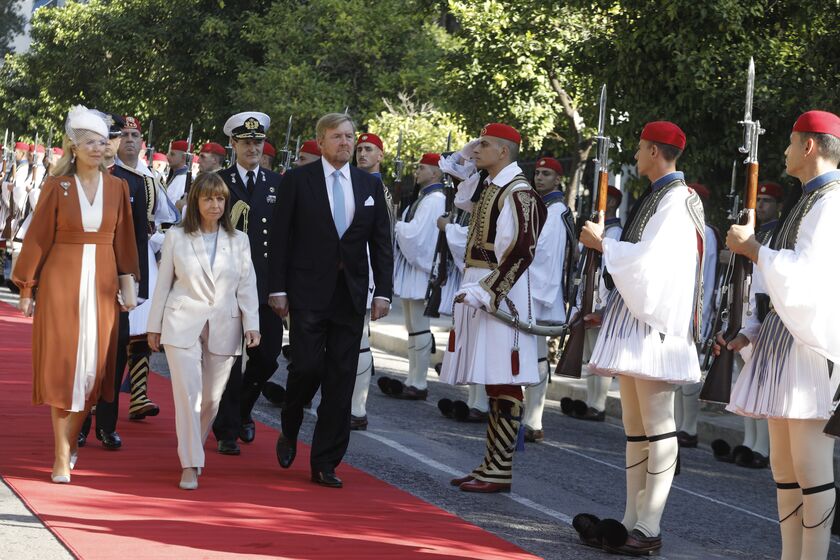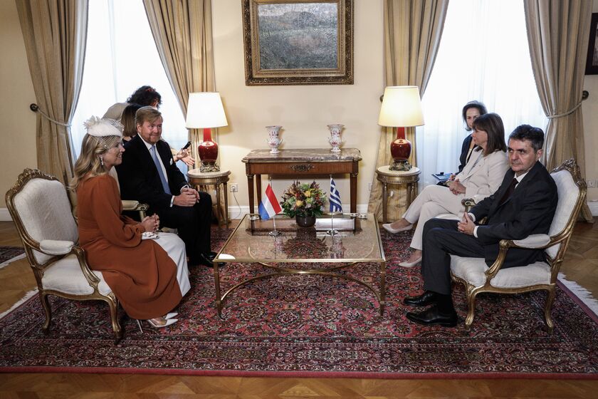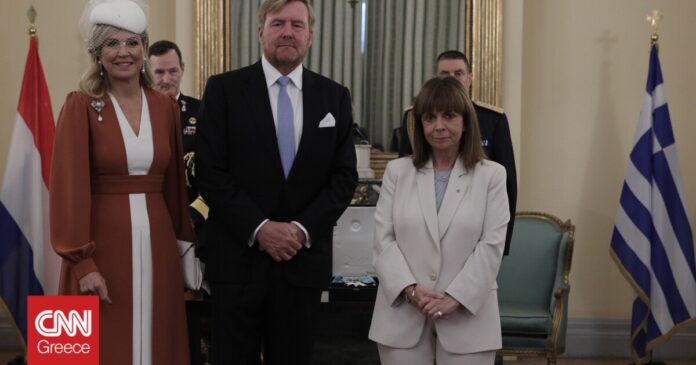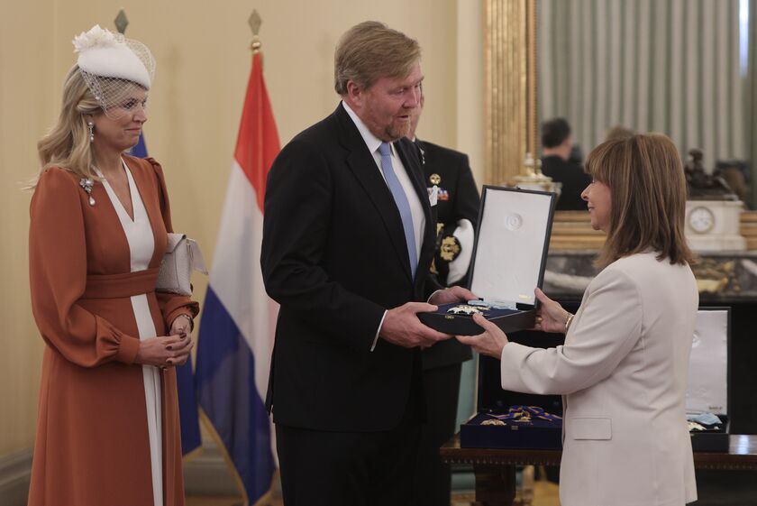 Νωρίτερα, η Πρόεδρος της Δημοκρατίας, σε ειδική τελετή στο Προεδρικό Μέγαρο, απένειμε στον Βασιλιά και στη Βασίλισσα της Ολλανδίας το Παράσημο του Μεγαλόσταυρου του Τάγματος του Σωτήρος.