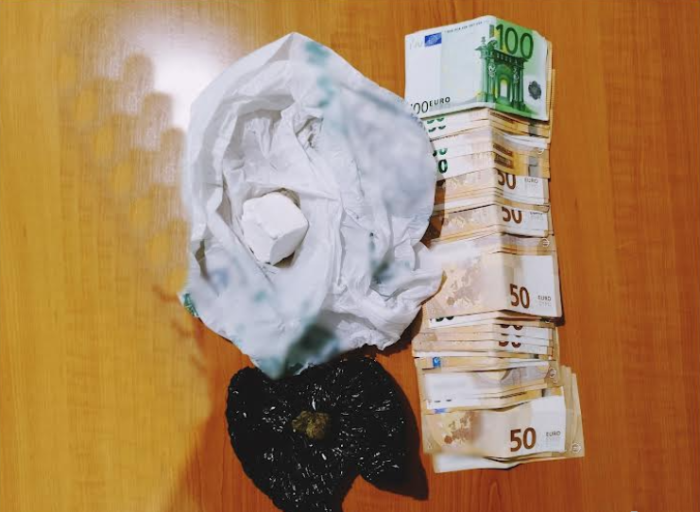 - (75,77) γραμμάρια κοκαΐνης και (4,78) γραμμάρια κάνναβης, σε ντουλαπάκι – θήκη, κάτω από τη θέση του οδηγού, καθώς και