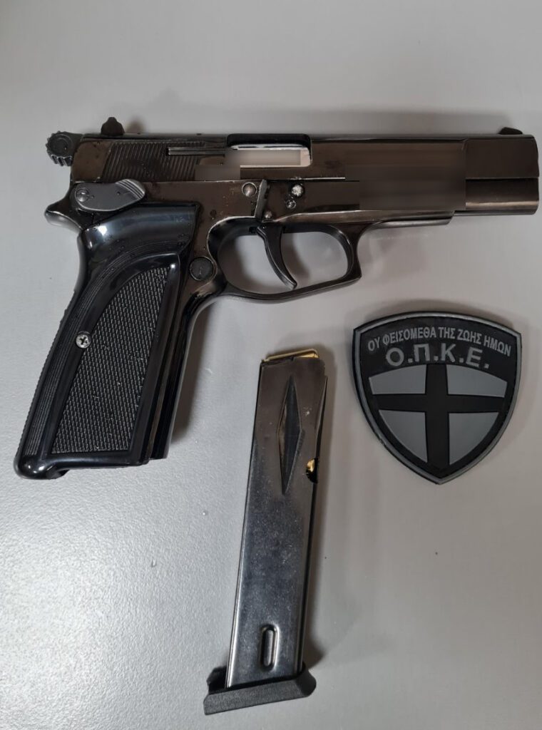 Ειδικότερα, ο ημεδαπός εντοπίστηκε στο πλαίσιο στοχευμένων αστυνομικών ελέγχων και συνελήφθη σε περιοχή της Κεντρικής Κέρκυρας, καθώς, στην κατοχή του βρέθηκε και κατασχέθηκε, ένα πιστόλι κρότου με γεμιστήρα που περιείχε -12- αβολίδοτα φυσίγγια των 9mm.