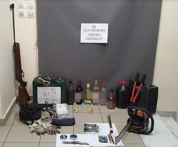 Σε έρευνα που πραγματοποιήθηκε στο σπίτι του βρέθηκε και κατασχέθηκε – εκτός των άλλων – μέρος αντικειμένων που αφαίρεσε προχθές (5-4-2023) μετά τα μεσάνυχτα από σπίτι, τα οποία αποδόθηκαν στον ιδιοκτήτη, καθώς και κυνηγητικό όπλο και μαχαίρι.