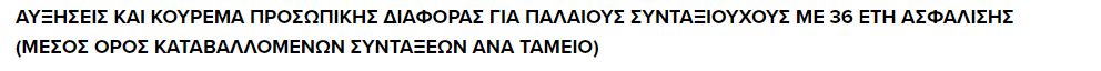 - Αυξήσεις 6 ετών για όσους παίρνουν εθνική και ανταποδοτική σύνταξη 1.250 ευρώ με υπόλοιπο διαφοράς 212 ευρώ.
