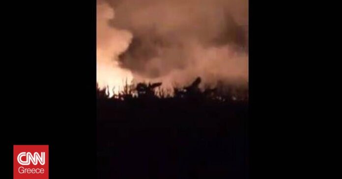 Αυτόπτες μάρτυρες κατέγραψαν βίντεο που δείχνουν το αεροσκάφος να φλέγεται και να ακολουθούν εκρήξεις.
