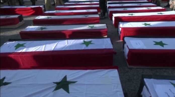Τουλάχιστον 100 αξιωματικοί και πολίτες σκοτώθηκαν, ανάμεσά έξι γυναίκες και έξι παιδιά. Πάνω από 200 είναι οι τραυματίες. Πρόκειται για την πιο αιματηρή επίθεση που έχει γίνει ποτέ σε συριακή στρατιωτική εγκατάσταση.