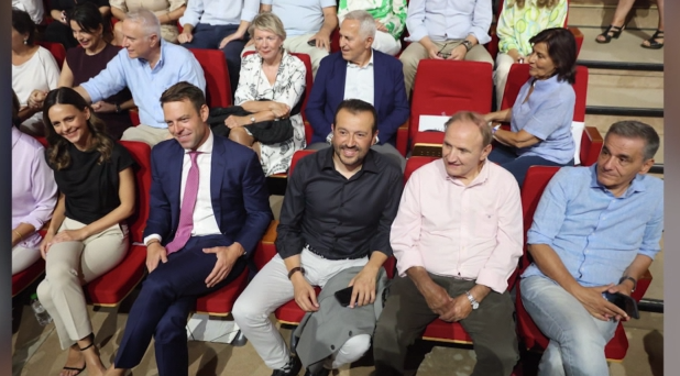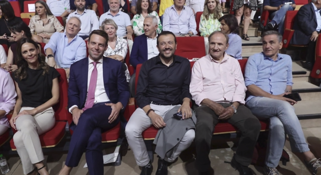 Οι υποψήφιοι κάθισαν μαζί στην πρώτη σειρά όλοι μαζί με την Έφη Αχτσιόγλου να ανταλλάσσει θερμή χειραψία με τον Στέφανο Κασσελάκη. Τα χαμόγελα περίσσευαν μεταξύ των συνυποψηφίων και των στελεχών.