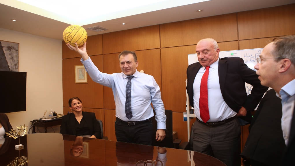 Τον αναπληρωτή Υπουργό Αθλητισμού Γιάννη Βρούτση επισκέφτηκαν τα μέλη της γυναικείας Εθνικής ομάδας του πόλο.