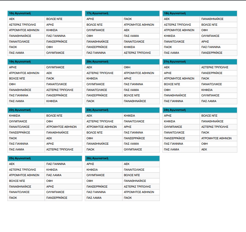 Αναλυτικά το πρόγραμμα του πρωταθλήματος: