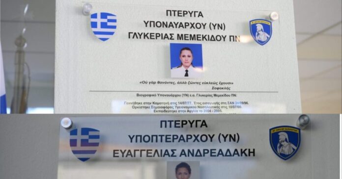Μέσα σε κλίμα συγκίνησης πραγματοποιήθηκε σήμερα (19.02.2026) η τελετή ονοματοδοσίας των κτιρίων διαβίωσης της Σχολής Αξιωματικών Νοσηλευτικής σε «Πτέρυγα Υποναυάρχου (Γλυκερίας Μεμεκίδου» και «Πτέρυγα Υποπτεράρχου Ευαγγελίας Ανδρεαδάκη», ως φόρο τιμής στις δύο αξιωματικούς που έχασαν τη ζωή τους στη Λιβύη, κατά την διάρκεια ελληνικής ανθρωπιστικής αποστολής.