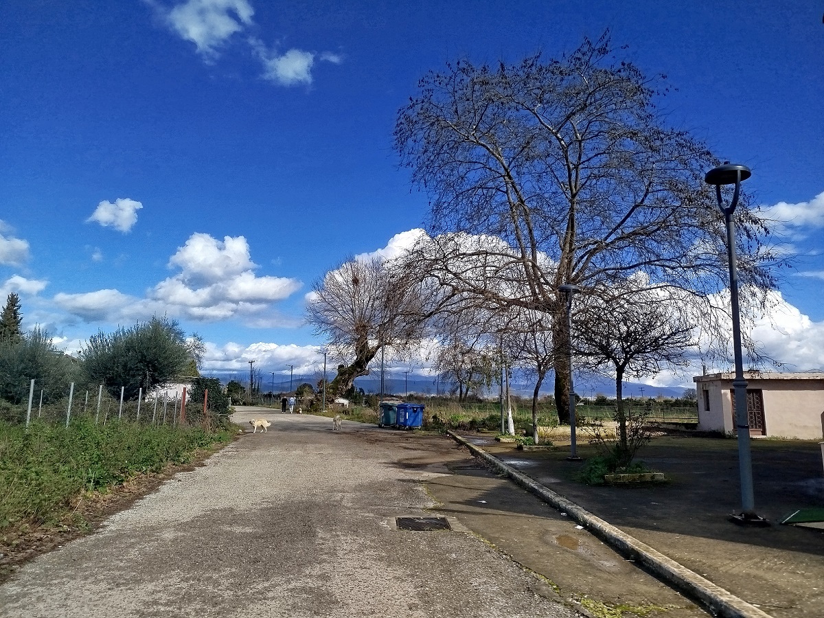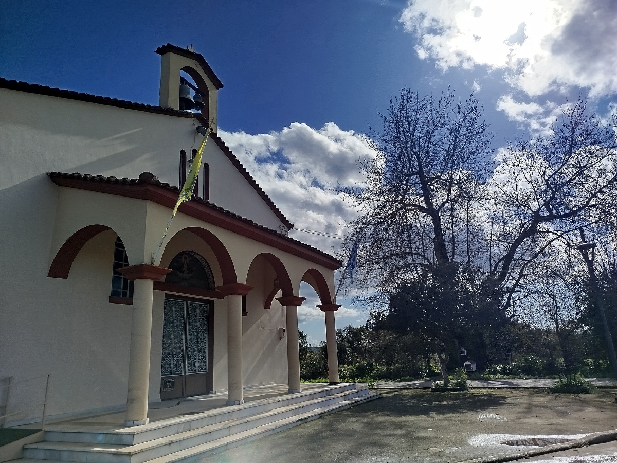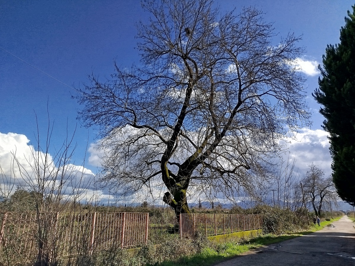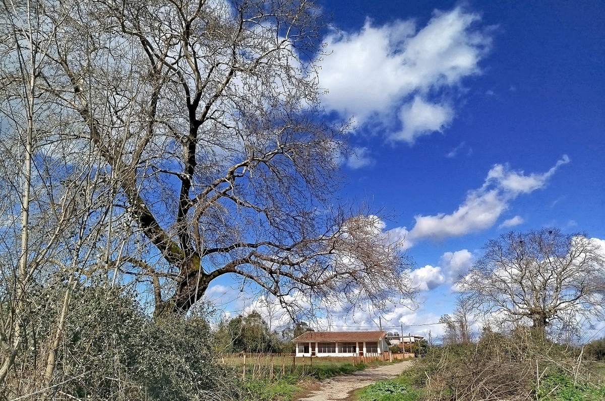 Μέσα Φεβρουαρίου, η ομορφιά της περιοχής στον οικισμό Αγίου Γεωργίου Καλυβίων δίνει την αίσθηση γαλήνης που μόνο η φύση μπορεί να προσφέρει. Η φύση κρατάει την αναπνοή της περιμένοντας την άνοιξη και τα γυμνά κλαδιά των δέντρων σχηματίζουν μια όμορφη και περίπλοκη δαντέλα στον φωτεινό μπλε ουρανό.