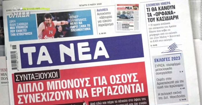 Αρχική Ελλάδα Τα πρωτοσέλιδα των εφημερίδων ΕλλάδαΤα πρωτοσέλιδα των εφημερίδων 3 Μαΐου 2023FacebookTwitterPinterestWhatsApp Πηγή Παρόμοια άρθραΠερισσότερα απο τον δημιουργόΟι αγρότες έκλεισαν την εθνική οδό και στα δύο ρεύματα στα ΜάλγαραΘεσσαλονίκη: Γονείς άφησαν τα ανήλικα παιδιά τους να κοιμούνται στην αυλή σπιτιούΓιώργος Μαζωνάκης: Στην αντεπίθεση ο επιχειρηματίας που κατηγορεί για εκβίαση ο τραγουδιστής – Το εξώδικο για τις οφειλές των εκατοντάδων χιλιάδων ευρώ και οι...τελευταία άρθραΠαναθηναϊκός: Στο Telekom Center Athens για να αποθεωθεί η ομάδα μπάσκετ... 19 Δεκεμβρίου 2025ΕΥΔΑΠ: Οδηγός για τις αλλαγές στα τιμολόγια του νερού – 17... 19 Δεκεμβρίου 2025Οι αγρότες έκλεισαν την εθνική οδό και στα δύο ρεύματα στα... 19 Δεκεμβρίου 2025Θεσσαλονίκη: Γονείς άφησαν τα ανήλικα παιδιά τους να κοιμούνται στην αυλή... 19 Δεκεμβρίου 2025Επεισόδιο στη Βουλή ανάμεσα σε Καιρίδη και Δαβάκη: «Που είναι ο... 19 Δεκεμβρίου 2025Ο Παναθηναϊκός φουλάρει για Μανδά: Προτείνει στη Λάτσιο 4 εκατομμύρια ευρώ... 19 Δεκεμβρίου 2025