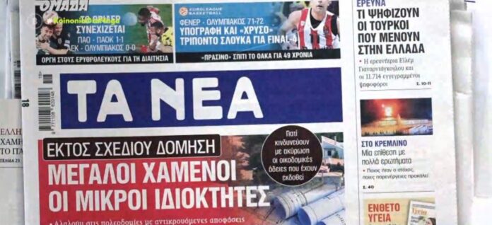 Αρχική Ελλάδα Τα πρωτοσέλιδα των εφημερίδων ΕλλάδαΤα πρωτοσέλιδα των εφημερίδων 4 Μαΐου 2023FacebookTwitterPinterestWhatsApp Πηγή Παρόμοια άρθραΠερισσότερα απο τον δημιουργόΘεσσαλονίκη: Στη φυλακή ο 44χρονος που κατηγορείται ότι προσπάθησε να πνίξει με κορδόνια την 34χρονη σύντροφό τουΘανατηφόρο τροχαίο στο Ηράκλειο: Μηχανή «καρφώθηκε» με ταχύτητα πάνω σε αυτοκίνητα – Ένας νεκρός και μία τραυματίαςΗ μαγεία των Χριστουγέννων μεταμορφώνεται σε εμπειρία με την υπογραφή της GRECOTELτελευταία άρθραΘεσσαλονίκη: Στη φυλακή ο 44χρονος που κατηγορείται ότι προσπάθησε να πνίξει... 19 Δεκεμβρίου 2025Ο Έλληνας τραγουδιστής που «σαρώνει» τα βραβεία στο εξωτερικό! 19 Δεκεμβρίου 2025Παπαθανάσης για νέο Εθνικό Πρόγραμμα Ανάπτυξης 2026-2030: Είναι υπερδιπλάσιο από αυτό... 19 Δεκεμβρίου 2025Θανατηφόρο τροχαίο στο Ηράκλειο: Μηχανή «καρφώθηκε» με ταχύτητα πάνω σε αυτοκίνητα... 19 Δεκεμβρίου 2025Το μυστικό των makeup artists για βλέμμα που μαγνητίζει: Η σκιά-πρωταγωνιστής... 19 Δεκεμβρίου 2025Άρης: Χωρίς Φαντιγκά και Ράτσιτς στην Τρίπολη 19 Δεκεμβρίου 2025