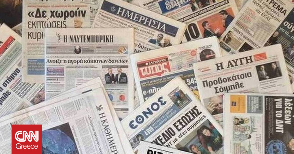 Αρχική Ελλάδα Τα πρωτοσέλιδα των εφημερίδων (9 Ιουλίου) ΕλλάδαΤα πρωτοσέλιδα των εφημερίδων (9 Ιουλίου) 9 Ιουλίου 2022FacebookTwitterPinterestWhatsApp Διαβάστε εδώ τα πρωτοσέλιδα των εφημερίδων. Περισσότερα… cnn.gr Παρόμοια άρθραΠερισσότερα απο τον δημιουργόΘεσσαλονίκη: Η στιγμή που η μεθυσμένη οδηγός «καρφώνεται» στα σταθμευμένα αυτοκίνητα«Κίμων»: Η συγκινητική στιγμή που Ναυτικοί Δόκιμοι την υποδέχονται φωνάζοντας «Ζήτω το Πολεμικό Ναυτικό» – Τι φέρνει η νέα BelharraΧειροπέδες σε μοντέλο για συμμετοχή σε συμμορία ληστών που χτυπούσε βενζινάδικα στην Αττικήτελευταία άρθραΘεσσαλονίκη: Η στιγμή που η μεθυσμένη οδηγός «καρφώνεται» στα σταθμευμένα αυτοκίνητα 16 Ιανουαρίου 2026Κώστας Ανεστίδης: Το Μαξίμου «έκοψε» τον αγροτοσυνδικαλιστή από τη συνάντηση της... 16 Ιανουαρίου 2026Άρης Betsson: Εκτός ομάδας Ίνοκ, Φορμπς και Γκιουζέλης με απόφαση Μίλιτσιτς 16 Ιανουαρίου 2026«Κίμων»: Η συγκινητική στιγμή που Ναυτικοί Δόκιμοι την υποδέχονται φωνάζοντας «Ζήτω... 16 Ιανουαρίου 2026Χειροπέδες σε μοντέλο για συμμετοχή σε συμμορία ληστών που χτυπούσε βενζινάδικα... 16 Ιανουαρίου 2026Γεραπετρίτης: «Θα έρθει και η επέκταση των χωρικών μας υδάτων» 16 Ιανουαρίου 2026