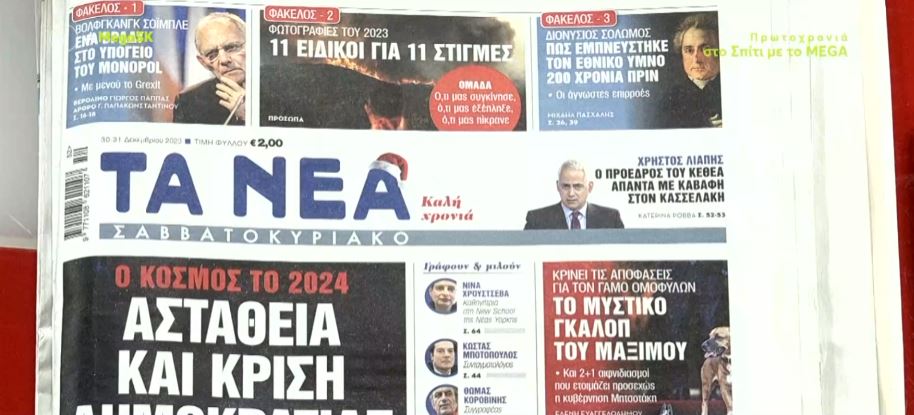 Αρχική Ελλάδα Τα πρωτοσέλιδα των εφημερίδων σήμερα ΕλλάδαΤα πρωτοσέλιδα των εφημερίδων σήμερα 30 Δεκεμβρίου 2023FacebookTwitterPinterestWhatsApp Πηγή Παρόμοια άρθραΠερισσότερα απο τον δημιουργόΕξαφανίστηκε 33χρονος από τον Πύργο Ηλείας – Η ανακοίνωση από το «Χαμόγελο του Παιδιού»Πορεία από το Θησείο στη Βουλή για την Παγκόσμια Ημέρα Βουνού με σύνθημα «Λευτεριά σε ποτάμια και βουνά»Φοινικούντα: Νέες αποκαλύψεις για την διπλή δολοφονία – Ο ανιψιός του ιδιοκτήτη μετέφερε τον 22χρονο από το κάμπινγκ στα ΚΤΕΛ Καλαμάταςτελευταία άρθραΕξαφανίστηκε 33χρονος από τον Πύργο Ηλείας – Η ανακοίνωση από το... 11 Δεκεμβρίου 2025Με Ντέσερς και Μπρούνο οι κλήσεις της Νιγηρίας για το Copa... 11 Δεκεμβρίου 2025Παναιτωλικός: Κυκλοφόρησαν τα εισιτήρια του αγώνα με την AEK 11 Δεκεμβρίου 2025Γιούλικα Σκαφιδά: Το μήνυμα που έγραψε στις 6 το πρωί και... 11 Δεκεμβρίου 2025Πορεία από το Θησείο στη Βουλή για την Παγκόσμια Ημέρα Βουνού... 11 Δεκεμβρίου 2025ΠΑΣΟΚ για εκλογή Πιερρακάκη στο Eurogroup: Σημαντική και θετική εξέλιξη για... 11 Δεκεμβρίου 2025