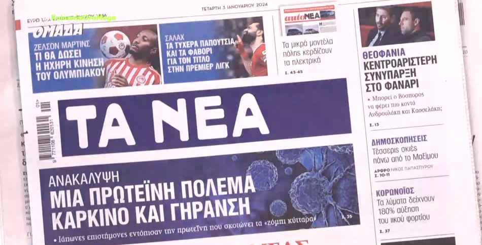 Αρχική Ελλάδα Τα πρωτοσέλιδα των εφημερίδων σήμερα ΕλλάδαΤα πρωτοσέλιδα των εφημερίδων σήμερα 3 Ιανουαρίου 2024FacebookTwitterPinterestWhatsApp Πηγή Παρόμοια άρθραΠερισσότερα απο τον δημιουργόΈνοπλες Δυνάμεις: Εντυπωσιακά πλήγματα αρμάτων μάχης, ελικοπτέρων και αεροσκαφών στην στρατιωτική άσκηση «Golden Sword-25»Πώς αποκαλύφθηκε η υπόθεση του Δανού δότη σπέρματος με καρκινικό γονίδιο και γιατί δεν ανιχνεύθηκεΕξαφανίστηκε 33χρονος από τον Πύργο Ηλείας – Η ανακοίνωση από το «Χαμόγελο του Παιδιού»τελευταία άρθραΕλένη Τσολάκη: Οι μαμαδίστικες στιγμές της καθημερινότητάς της και το τρυφερό... 12 Δεκεμβρίου 2025Παναθηναϊκός – Βικτόρια Πλζεν 0-0: Έχασε τεράστια ευκαιρία με παίκτη παραπάνω... 12 Δεκεμβρίου 2025Ένοπλες Δυνάμεις: Εντυπωσιακά πλήγματα αρμάτων μάχης, ελικοπτέρων και αεροσκαφών στην στρατιωτική... 12 Δεκεμβρίου 2025Πώς αποκαλύφθηκε η υπόθεση του Δανού δότη σπέρματος με καρκινικό γονίδιο... 11 Δεκεμβρίου 2025Συγχαρητήρια ΣΥΡΙΖΑ σε Πιερρακάκη: Είναι σημαντικό να αναλαμβάνουν Έλληνες κρίσιμες θέσεις 11 Δεκεμβρίου 2025Αποκαλυπτική έρευνα της Deloitte για τα εμπορικά ακίνητα 11 Δεκεμβρίου 2025