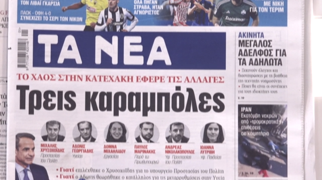 Αρχική Ελλάδα Τα πρωτοσέλιδα των εφημερίδων σήμερα ΕλλάδαΤα πρωτοσέλιδα των εφημερίδων σήμερα 4 Ιανουαρίου 2024FacebookTwitterPinterestWhatsApp Πηγή Παρόμοια άρθραΠερισσότερα απο τον δημιουργόΦλώρινα: Σε κατάσταση έκτακτης ανάγκης ο δήμος εξαιτίας των καταστροφών από την κακοκαιρία ByronΈνοπλες Δυνάμεις: Εντυπωσιακά πλήγματα αρμάτων μάχης, ελικοπτέρων και αεροσκαφών στην στρατιωτική άσκηση «Golden Sword-25»Πώς αποκαλύφθηκε η υπόθεση του Δανού δότη σπέρματος με καρκινικό γονίδιο και γιατί δεν ανιχνεύθηκετελευταία άρθραΦλώρινα: Σε κατάσταση έκτακτης ανάγκης ο δήμος εξαιτίας των καταστροφών από... 12 Δεκεμβρίου 2025Politico για Κυριάκο Πιερρακάκη: Από επιστήμονας υπολογιστών στην κεφαλή του Eurogroup 12 Δεκεμβρίου 2025Παναιτωλικός: Το «άχαστο» σερί στη Μακεδονία 12 Δεκεμβρίου 2025Ελένη Τσολάκη: Οι μαμαδίστικες στιγμές της καθημερινότητάς της και το τρυφερό... 12 Δεκεμβρίου 2025Παναθηναϊκός – Βικτόρια Πλζεν 0-0: Έχασε τεράστια ευκαιρία με παίκτη παραπάνω... 12 Δεκεμβρίου 2025Ένοπλες Δυνάμεις: Εντυπωσιακά πλήγματα αρμάτων μάχης, ελικοπτέρων και αεροσκαφών στην στρατιωτική... 12 Δεκεμβρίου 2025