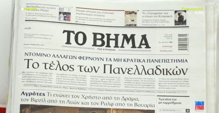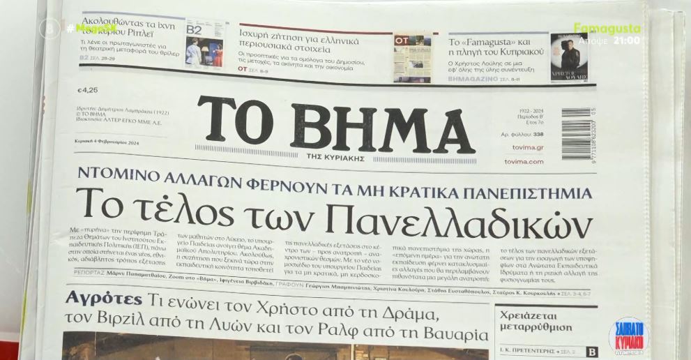 ΕλλάδαΤα πρωτοσέλιδα των εφημερίδων σήμερα 4 Φεβρουαρίου 2024FacebookTwitterPinterestWhatsApp Πηγή Παρόμοια άρθραΠερισσότερα απο τον δημιουργόΈνοπλες Δυνάμεις: Σχέδιο για περισσότερα και οπλισμένα μη επανδρωμένα αεροσκάφη Heron – Η αξία τους στο πεδίο μάχηςΡέθυμνο: Ανήλικος μέθυσε σε γάμο που πήγε με τον πατέρα του και κατέληξε στο νοσοκομείοΊλιον: Σκηνές Άγριας Δύσης μετά την καταγγελία της 17χρονης για απόπειρα βιασμού από τον πεθερό της