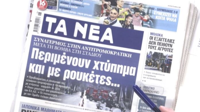 ΕλλάδαΤα πρωτοσέλιδα των εφημερίδων σήμερα 5 Φεβρουαρίου 2024FacebookTwitterPinterestWhatsApp Πηγή Παρόμοια άρθραΠερισσότερα απο τον δημιουργόΧολαργός: Αφού έστησαν ενέδρα στον 14χρονο και τον σάπισαν στο ξύλο, πανηγύριζαν στα social media με το μαχαίρι της επίθεσηςΟ ΕΦΕΤ εντόπισε μπιφτέκι με σαλμονέλα – Δείτε το προϊόν που αποσύρεταιΑγρότες: Ταυτοποιήθηκαν όσοι συμμετείχαν στα επεισόδια σε Ηράκλειο και Χανιά – Θα κατηγορηθούν για εγκληματική οργάνωση