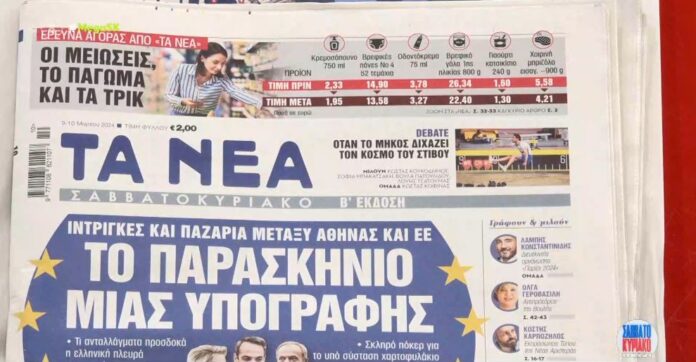 ΕλλάδαΤα πρωτοσέλιδα των εφημερίδων σήμερα 9 Μαρτίου 2024FacebookTwitterPinterestWhatsApp Πηγή Παρόμοια άρθραΠερισσότερα απο τον δημιουργόΚαλλιθέα: Η στιγμή που αυτοκίνητο χτυπά 17χρονο και τον εγκαταλείπει αιμόφυρτο στην άσφαλτοΕκλογές δικηγόρων: Νικητής ο Ανδρέας Κουτσόλαμπρος στην Αθήνα, ανανεώνουν θητείες Φινοκαλιώτης και Κλάππας σε Θεσσαλονίκη και ΠειραιάΙταλία: Συνεχής βελτίωση του 18χρονου Μάριου που έκανε μεταμόσχευση ήπατος στο Τορίνο