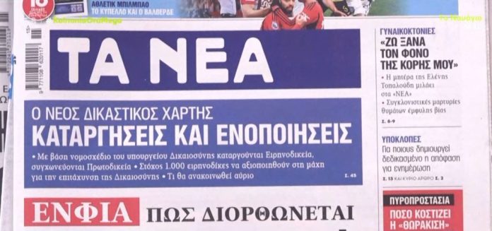 ΕλλάδαΤα πρωτοσέλιδα των εφημερίδων σήμερα 8 Απριλίου 2024FacebookTwitterPinterestWhatsApp Πηγή Παρόμοια άρθραΠερισσότερα απο τον δημιουργόΑγρότες: Κλιμακώνουν τα μπλόκα σε όλη την Ελλάδα – Οι δρόμοι και οι παρακαμπτήριοι που είναι κλειστοίΗ Τουρκία προκαλεί ξανά με τρεις παραβάσεις του FIR Αθηνών στο νοτιοανατολικό ΑιγαίοΚαλλιθέα: Η στιγμή που αυτοκίνητο χτυπά 17χρονο και τον εγκαταλείπει αιμόφυρτο στην άσφαλτο