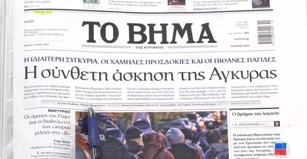 ΕλλάδαΤα πρωτοσέλιδα των εφημερίδων σήμερα 12 Μαΐου 2024FacebookTwitterPinterestWhatsApp Πηγή Παρόμοια άρθραΠερισσότερα απο τον δημιουργόΣυναγερμός στα Καλύβια: Βρέθηκε ύποπτο αντικείμενο κάτω από αυτοκίνητοΑγρότες: Κλιμακώνουν τα μπλόκα σε όλη την Ελλάδα – Οι δρόμοι και οι παρακαμπτήριοι που είναι κλειστοίΗ Τουρκία προκαλεί ξανά με τρεις παραβάσεις του FIR Αθηνών στο νοτιοανατολικό Αιγαίο