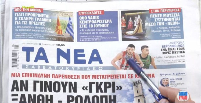 ΕλλάδαΤα πρωτοσέλιδα των εφημερίδων σήμερα 18 Μαΐου 2024FacebookTwitterPinterestWhatsApp Πηγή Παρόμοια άρθραΠερισσότερα απο τον δημιουργόΤα μπλόκα των αγροτών φέρνουν ακυρώσεις στον Μύλο των Ξωτικών στα ΤρίκαλαΕπιθέσεις σκύλων: Τι φταίει πραγματικά και πώς μπορεί να προληφθούν τραγωδίες σαν της ΖακύνθουΧολαργός: Με δόλωμα μια κοπέλα έστησαν ραντεβού σε 14χρονο και τον μαχαίρωσαν