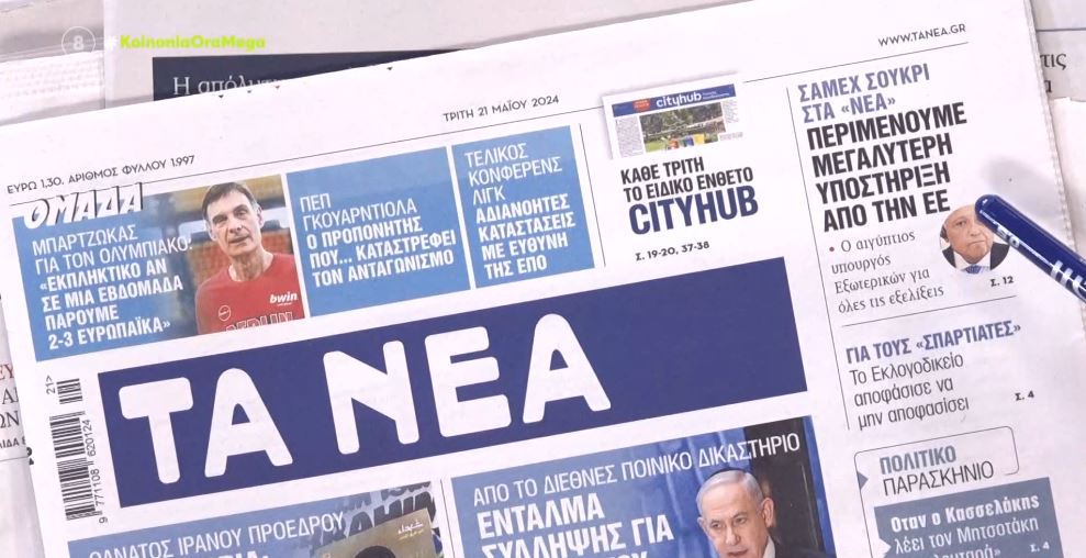 Αρχική Ελλάδα Τα πρωτοσέλιδα των εφημερίδων σήμερα ΕλλάδαΤα πρωτοσέλιδα των εφημερίδων σήμερα 21 Μαΐου 2024FacebookTwitterPinterestWhatsApp Πηγή Παρόμοια άρθραΠερισσότερα απο τον δημιουργόΣοβαρό τροχαίο στη Βασιλίσσης Σοφίας: Φορτηγάκι συγκρούστηκε με μηχανή στο ύψος της πρεσβείας των ΗΠΑΑγρότες: Σκληραίνουν τη στάση τους και προαναγγέλουν νέες κινητοποιήσεις – Κρίσιμη σύσκεψη στις ΣέρρεςΚαιρός σήμερα: Λιακάδα με χαμηλές θερμοκρασίες – Στους 17 βαθμούς η θερμοκρασία στην Αττικήτελευταία άρθραΣοβαρό τροχαίο στη Βασιλίσσης Σοφίας: Φορτηγάκι συγκρούστηκε με μηχανή στο ύψος... 18 Δεκεμβρίου 2025Φοροδιαφυγή: Ποιοι φορολογούμενοι κινδυνεύουν να πληρώσουν «τσουχτερά» πρόστιμα 18 Δεκεμβρίου 2025ΑΕΚ – Κραϊόβα: Να φτιάξει μια μεγάλη κιτρινόμαυρη βραδιά που θα... 18 Δεκεμβρίου 2025Αγρότες: Σκληραίνουν τη στάση τους και προαναγγέλουν νέες ... 18 Δεκεμβρίου 2025Ενός λεπτού σιγή στην προπόνηση της Νότιγχαμ Φόρεστ, στη μνήμη της... 18 Δεκεμβρίου 2025ΥΠΕΞ για δηλώσεις Μίτσκοσκι: «Κάθε προσπάθεια αλλοίωσης της Συμφωνίας των Πρεσπών... 18 Δεκεμβρίου 2025