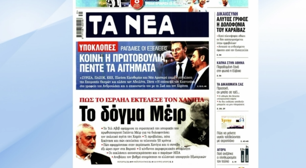 Αρχική Ελλάδα Τα πρωτοσέλιδα των εφημερίδων σήμερα ΕλλάδαΤα πρωτοσέλιδα των εφημερίδων σήμερα 1 Αυγούστου 2024FacebookTwitterPinterestWhatsApp Πηγή Παρόμοια άρθραΠερισσότερα απο τον δημιουργόΚαιρός σήμερα: Βροχές και καταιγίδες σε Θεσσαλία και σε νησιά – Χιόνια στα βορειοδυτικά ορεινάΟ Μητροπολίτης Φθιώτιδας και η υπουργός Παιδείας έβαλαν γυαλιά εικονικής πραγματικότηταςΣεισμός 3,3 Ρίχτερ στην Κω – Κοντά στο χωριό Κέφαλος το επίκεντροτελευταία άρθραEuroleague: Ο Σβέτισλαβ Πέσιτς είναι κι επίσημα ο νέος προπονητής της... 23 Δεκεμβρίου 2025Παναθηναϊκός: Έφθασαν στο παγωμένο Κάουνας οι «πράσινοι» για το παιχνίδι με... 23 Δεκεμβρίου 2025Βραβεία ΠΣΑΤ: Το video για τα 100 χρόνια του Ολυμπιακού 23 Δεκεμβρίου 2025Καιρός σήμερα: Βροχές και καταιγίδες σε Θεσσαλία και σε νησιά –... 23 Δεκεμβρίου 2025Βραβεία ΠΣΑΤ: Ο Βαγγέλης Μαρινάκης βραβεύτηκε για τη συμβολή του στον... 23 Δεκεμβρίου 2025Ολυμπιακός: Το αφιέρωμα για τα 209 παιχνίδια του Γιώργου Μπαρτζώκα 23 Δεκεμβρίου 2025