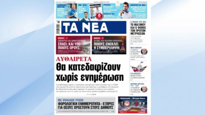 Αρχική Ελλάδα Τα πρωτοσέλιδα των εφημερίδων σήμερα ΕλλάδαΤα πρωτοσέλιδα των εφημερίδων σήμερα 8 Αυγούστου 2024FacebookTwitterPinterestWhatsApp Πηγή Παρόμοια άρθραΠερισσότερα απο τον δημιουργόStoiximan: Η στιγμή, σου ανήκει – Πως σχεδιάζεται η εμπειρία γύρω από τις μικρές μεγάλες στιγμές των παικτώνΑπελπισία στα Τρίκαλα: Οι κρατήσεις έπεσαν στο 50% τις τελευταίες ημέρεςΜέσω gov.gr οι αιτήσεις για έκδοση ληξιαρχικών πράξεων για γεγονότα που τελέστηκαν στο εξωτερικό και έχουν δηλωθεί στο Ειδικό Ληξιαρχείοτελευταία άρθραΤουρκία: Ελληνίδα έπεσε θύμα ερωτικής απάτης στην Κωνσταντινούπολη – Ο «Μουράτ... 23 Δεκεμβρίου 2025Stoiximan: Η στιγμή, σου ανήκει – Πως σχεδιάζεται η εμπειρία γύρω... 23 Δεκεμβρίου 2025Ακρίβεια: Μεγάλη η «ψαλίδα» από το χωράφι στο ράφι – Σημαντικές... 23 Δεκεμβρίου 2025Απελπισία στα Τρίκαλα: Οι κρατήσεις έπεσαν στο 50% τις τελευταίες ημέρες 23 Δεκεμβρίου 2025Φώτης Ιωαννίδης: «Ο Αλαφούζος μου ζήτησε να μείνω για να πάρουμε... 23 Δεκεμβρίου 2025Κατερίνα Καινούργιου: Τα δύο ονόματα που θα δώσει στην κόρη της... 23 Δεκεμβρίου 2025