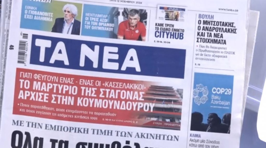 Αρχική Ελλάδα Τα πρωτοσέλιδα των εφημερίδων σήμερα ΕλλάδαΤα πρωτοσέλιδα των εφημερίδων σήμερα 12 Νοεμβρίου 2024FacebookTwitterPinterestWhatsApp Πηγή Παρόμοια άρθραΠερισσότερα απο τον δημιουργόΤραμπ: «Θα ήταν έξυπνο να εγκαταλείψει την εξουσία» – «Να κοιτάξεις τη χώρα σου», απαντά o ΜαδούροΚαιρός: Καταιγίδες και βροχές από το απόγευμα μέχρι τα Χριστούγεννα – Χιόνια θα «ντύσουν» τη βόρεια ΕλλάδαΧριστούγεννα στα μπλόκα θα κάνουν οι αγρότες: Παραμερίζουν τα τρακτέρ για τους ταξιδιώτες – Θέμα ασφάλειας από την αστυνομίατελευταία άρθραΤραμπ: «Θα ήταν έξυπνο να εγκαταλείψει την εξουσία» – «Να κοιτάξεις... 23 Δεκεμβρίου 2025Επική δήλωση Γκουαρντιόλα: «Ζύγισα τους παίκτες, αν κάποιος πάρει τρία κιλά... 23 Δεκεμβρίου 2025Φορέας Απόκτησης και Επαναμίσθωσης Ακινήτων: Πότε θα κάνει πρεμιέρα – Ερωτήσεις και... 23 Δεκεμβρίου 2025Τα 4 ζώδια που θα περάσουν καλύτερα την εβδομάδα των Χριστουγέννων 23 Δεκεμβρίου 2025Καιρός: Καταιγίδες και βροχές από το απόγευμα μέχρι τα Χριστούγεννα –... 23 Δεκεμβρίου 2025Χριστούγεννα στα μπλόκα θα κάνουν οι αγρότες: Παραμερίζουν τα τρακτέρ για... 23 Δεκεμβρίου 2025