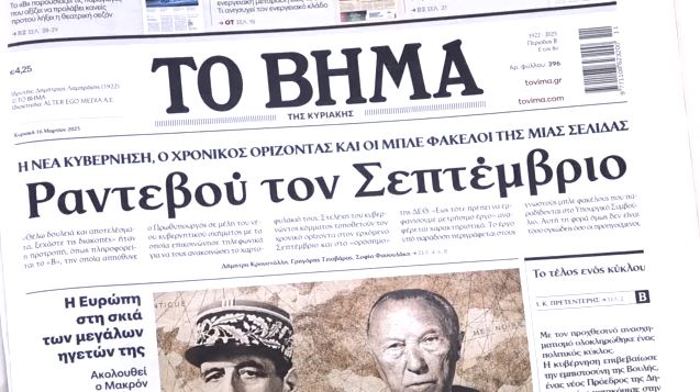 Αρχική Ελλάδα Τα πρωτοσέλιδα των εφημερίδων σήμερα ΕλλάδαΤα πρωτοσέλιδα των εφημερίδων σήμερα 16 Μαρτίου 2025FacebookTwitterPinterestWhatsApp Πηγή Παρόμοια άρθραΠερισσότερα απο τον δημιουργόΧανιά: Εργαζόμενοι στην καθαριότητα εισέπνευσαν τοξικές ουσίες και μεταφέρθηκαν στο νοσοκομείοΛειψυδρία: Τι αλλάζει στα τιμολόγια της ΕΥΔΑΠ από την 1η Ιανουαρίου – Πρόγραμμα 2,5 δισ.ευρώ για την θωράκιση της ΑττικήςΚαιρός: Τσουχτερό κρύο και χιόνια στην Αττική την Παραμονή Πρωτοχρονιάς και την πρώτη ημέρα του 2026 – Αναλυτική πρόγνωσητελευταία άρθραΟ Ολυμπιακός δίνει δανεικό τον Νίκο Λώλη στον ΠΑΣ Γιάννινα 31 Δεκεμβρίου 2025Παναθηναϊκός: Νέο πρόβλημα για τον Σίριλ Ντέσερς, έμεινε εκτός αποστολής στη... 31 Δεκεμβρίου 2025Παναθηναϊκός: Αντίστροφη μέτρηση για την επιστροφή του Γιώργου Κυριακόπουλου 31 Δεκεμβρίου 2025Euroleague: Σπουδαία διπλά για Ζαλγκίρις και Μονακό, άλλαξαν τα δεδομένα στη... 31 Δεκεμβρίου 2025Τα τελευταία ραντεβού με την εφορία – Ποιες φορολογικές εκκρεμότητες λήγουν... 31 Δεκεμβρίου 2025Αθηνά Οικονομάκου: Οι πρώτες μαγικές εικόνες από το ταξίδι στην Αργεντινή... 31 Δεκεμβρίου 2025