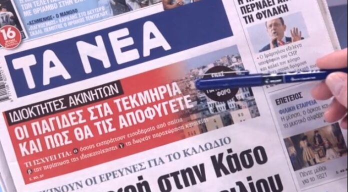 Αρχική Ελλάδα Τα πρωτοσέλιδα των εφημερίδων σήμερα ΕλλάδαΤα πρωτοσέλιδα των εφημερίδων σήμερα 24 Μαρτίου 2025FacebookTwitterPinterestWhatsApp Πηγή Παρόμοια άρθραΠερισσότερα απο τον δημιουργόΟι αγρότες κάνουν ρεβεγιόν στα μπλόκα: Πρωτοχρονιά με σούβλες, ζεστό κρασί και ζωντανή μουσική – Εντυπωσιακές εικόνες από τη ΝίκαιαΚαιρός Πρωτοχρονιάς: Το 2026 μας υποδέχεται με χαμηλές θερμοκρασίες, χιόνια και παγετό – Η πρόγνωση των επόμενων ημερώνΠαραμονή Πρωτοχρονιάς: Πως θα κινηθούν Μετρό, τραμ, λεωφορεία και τρόλεϊ πριν την αλλαγή του χρόνουτελευταία άρθραΠαναιτωλικός: «Τρέχει» για νέα μεταγραφή, δεν προχωράει του Ταβάρες 31 Δεκεμβρίου 2025Οι αγρότες κάνουν ρεβεγιόν στα μπλόκα: Πρωτοχρονιά με σούβλες, ζεστό κρασί... 31 Δεκεμβρίου 2025Σερβία: Σε συλλήψεις προχώρησαν οι Αρχές για την άγρια επίθεση στον... 31 Δεκεμβρίου 2025Ροντινέι: «Το 2025 ήταν μια χρονιά γεμάτη ευλογίες, αλλά είμαι σίγουρος... 31 Δεκεμβρίου 2025Κωνσταντίνος Τασούλας: «Ας είναι η νέα χρονιά ευκαιρία να αλλάξουμε όσα... 31 Δεκεμβρίου 2025Καιρός Πρωτοχρονιάς: Το 2026 μας υποδέχεται με χαμηλές θερμοκρασίες, χιόνια και... 31 Δεκεμβρίου 2025