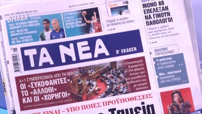 Αρχική Ελλάδα Τα πρωτοσέλιδα των εφημερίδων σήμερα ΕλλάδαΤα πρωτοσέλιδα των εφημερίδων σήμερα 19 Ιουνίου 2025FacebookTwitterPinterestWhatsApp Τι γράφουν οι εφημερίδες σήμερα 19/06/2025. Πηγή Παρόμοια άρθραΠερισσότερα απο τον δημιουργόΗράκλειο: Σε ΜΕΘ με μηνιγγίτιδα νοσηλεύεται ειδικευόμενη γιατρόςΗράκλειο: Ειδικευόμενη γιατρός νοσηλεύεται σε ΜΕΘ με μηνιγγίτιδαΒίντεο ντοκουμέντα από τη συμμορία των ληστών των βενζινάδικων που είχε για οδηγό το 33χρονο μοντέλοτελευταία άρθραΠέτη Πέρκα για Κωνσταντίνο Κυρανάκη: Προσχηματική η συγγνώμη, βουλευτές της ΝΔ... 16 Ιανουαρίου 2026Ηράκλειο: Σε ΜΕΘ με μηνιγγίτιδα νοσηλεύεται ειδικευόμενη γιατρός 16 Ιανουαρίου 2026Ο Ατρόμητος ανακοίνωσε τον Σίμο Μήτογλου 16 Ιανουαρίου 2026Ηράκλειο: Ειδικευόμενη γιατρός νοσηλεύεται σε ΜΕΘ με μηνιγγίτιδα 16 Ιανουαρίου 2026Eurogroup: Πότε θα γίνει η πρώτη συνεδρίαση με πρόεδρο τον Κυριάκο... 16 Ιανουαρίου 2026Βίντεο ντοκουμέντα από τη συμμορία των ληστών των βενζινάδικων που είχε... 16 Ιανουαρίου 2026