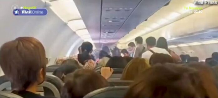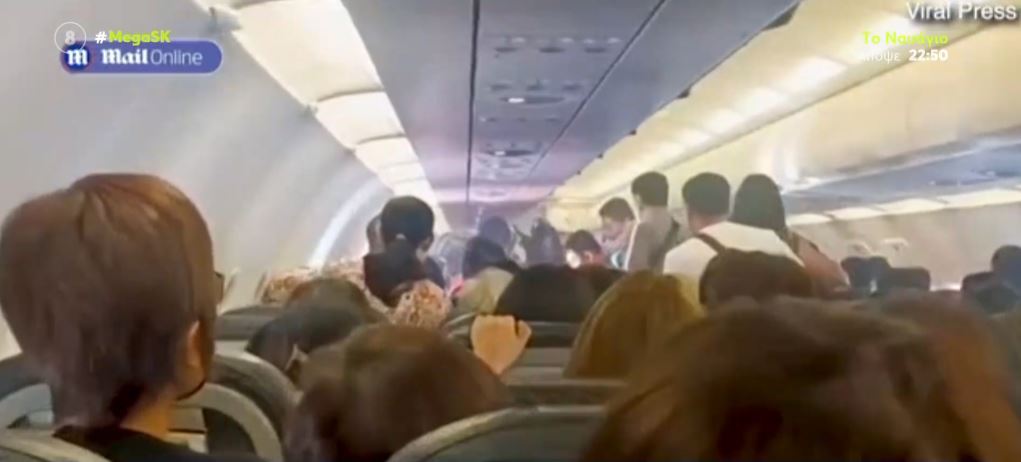 Το συγκλονισμένο πλήρωμα καμπίνας έσπευσε στη μεσαία σειρά του Airbus A320 για να σβήσει τις φλόγες, με τους επιβάτες να παρακολουθούν νευρικοί.