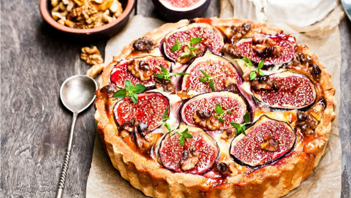 Πιέστε απαλά τα σύκα με την κομμένη πλευρά προς τα πάνω μέσα στο μείγμα αμυγδάλων. Ψήστε μέχρι να ροδίσει παντού. Αφήστε την τάρτα στη φόρμα για 15 λεπτά, στη συνέχεια αφαιρέστε τα πλαϊνά και μεταφέρετε σε μια σχάρα για να κρυώσει.
