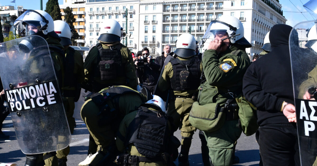 Επεισόδια μετά το τέλος της συγκέντρωσης στην πλατεία Συντάγματος στην Αθήνα για τη συμπλήρωση τριών χρόνων από το σιδηροδρομικό δυστύχημα των Τεμπών, που στοίχισε τις ζωές 57 ανθρώπων.Σάββατο 28 Φεβρουαρίου 2026 (ΓΙΑΝΝΗΣ ΠΑΝΑΓΟΠΟΥΛΟΣ / EUROKINISSI)