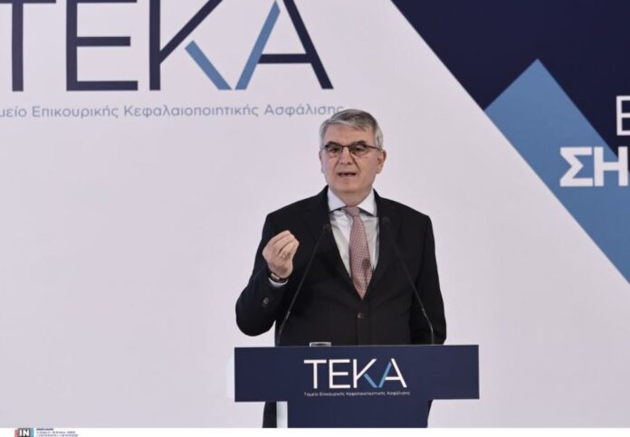 «Οι εισφορές επικουρικής ασφάλισης των ασφαλισμένων στο ΤΕΚΑ, 3% από τον εργοδότη και 3% από τον ασφαλισμένο, και αυτές κατευθύνονται στο ΤΕΚΑ αντί του ΕΦΚΑ. Το ΤΕΚΑ επενδύει αυτά τα χρήματα, με συγκεκριμένους κανόνες. Ο εργαζόμενος θα μπορεί είτε να διαλέγει είτε όλες του οι εισφορές του να τοποθετηθούν σε ένα από τα τρία funds του ΤΕΚΑ – ένα πιο χαμηλού ρίσκου, ένα ισορροπημένο, ένα με μεγαλύτερο ρίσκο – είτε να τοποθετεί συγκεκριμένα ποσοστά στο κάθε ένα από αυτά, π.χ. 30% στο υψηλού ρίσκου και 70% στο ισορροπημένο.