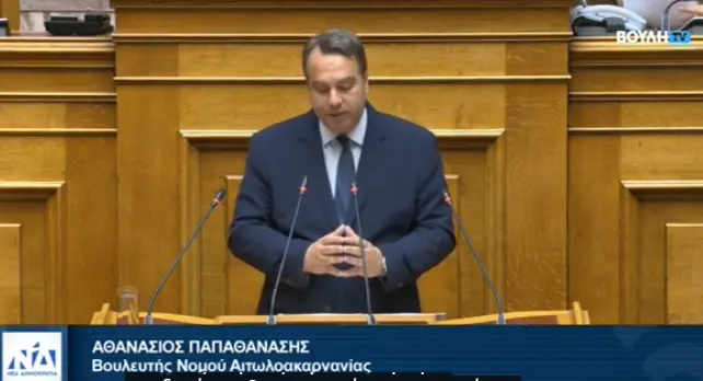Στην Ολομέλεια της Βουλής μίλησε ο Βουλευτής Αιτωλοακαρνανίας της Νέας Δημοκρατίας, Θανάσης Παπαθανάσης, κατά τη συζήτηση για την κύρωση της σύμβασης δωρεάς της κυρίας Λάτση για την ανέγερση της νέας Μονάδας Ημερήσιας Νοσηλείας «Νίκος Κούρκουλος» στο Πανεπιστημιακό Νοσοκομείο Πατρών.