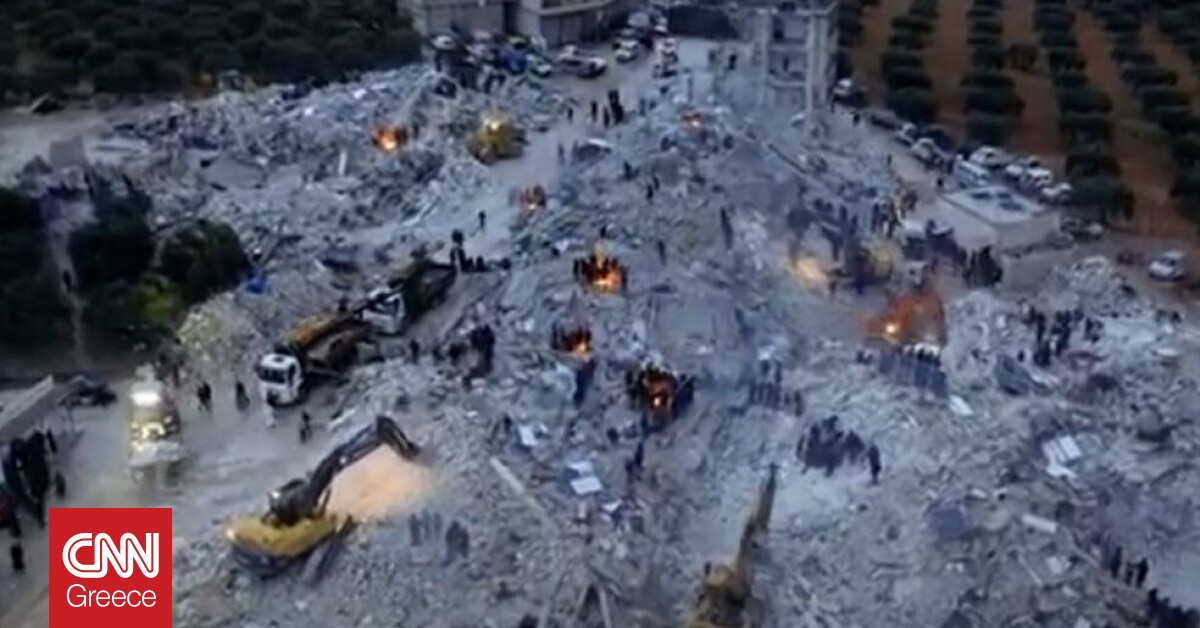 Εικόνες απόλυτης καταστροφής έρχονται και από τη Συρία μετά από το φονικό σεισμό 7,8 Ρίχτερ στην Τουρκία, με εναέρια πλάνα που δημοσιεύει το CNNi να αναδεικνύουν το μέγεθος της τραγωδίας αλλά και το τι έχουν να αντιμετωπίσουν τα σωστικά συνεργεία.