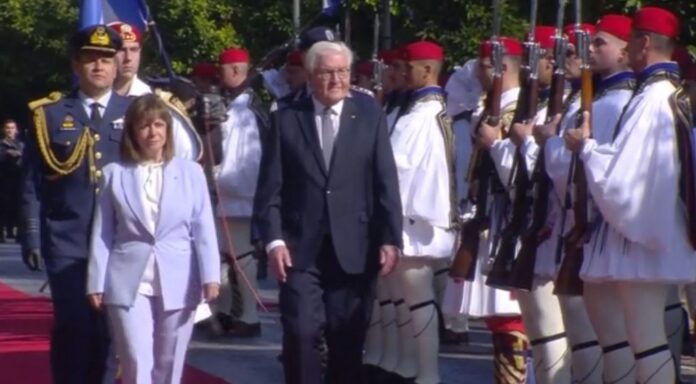 Νωρίτερα ο Γερμανός πρόεδρος κατέθεσε στεφάνι στο Μνημείο του Αγνώστου Στρατιώτη.
