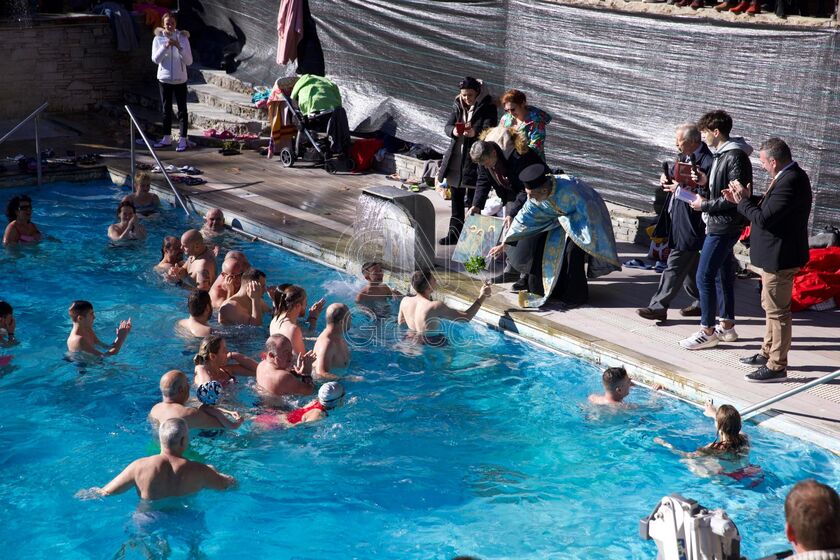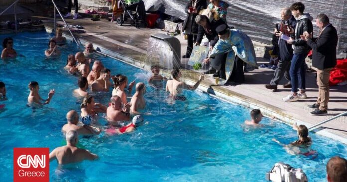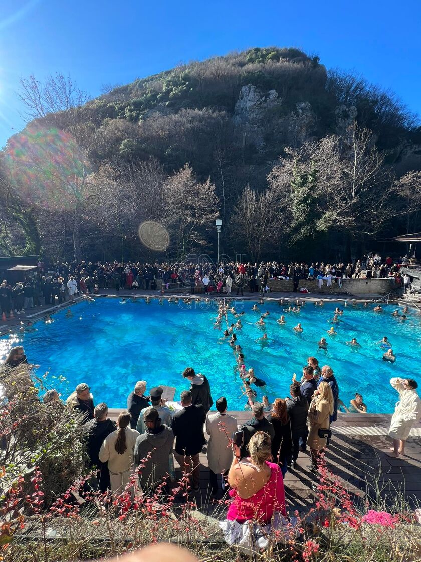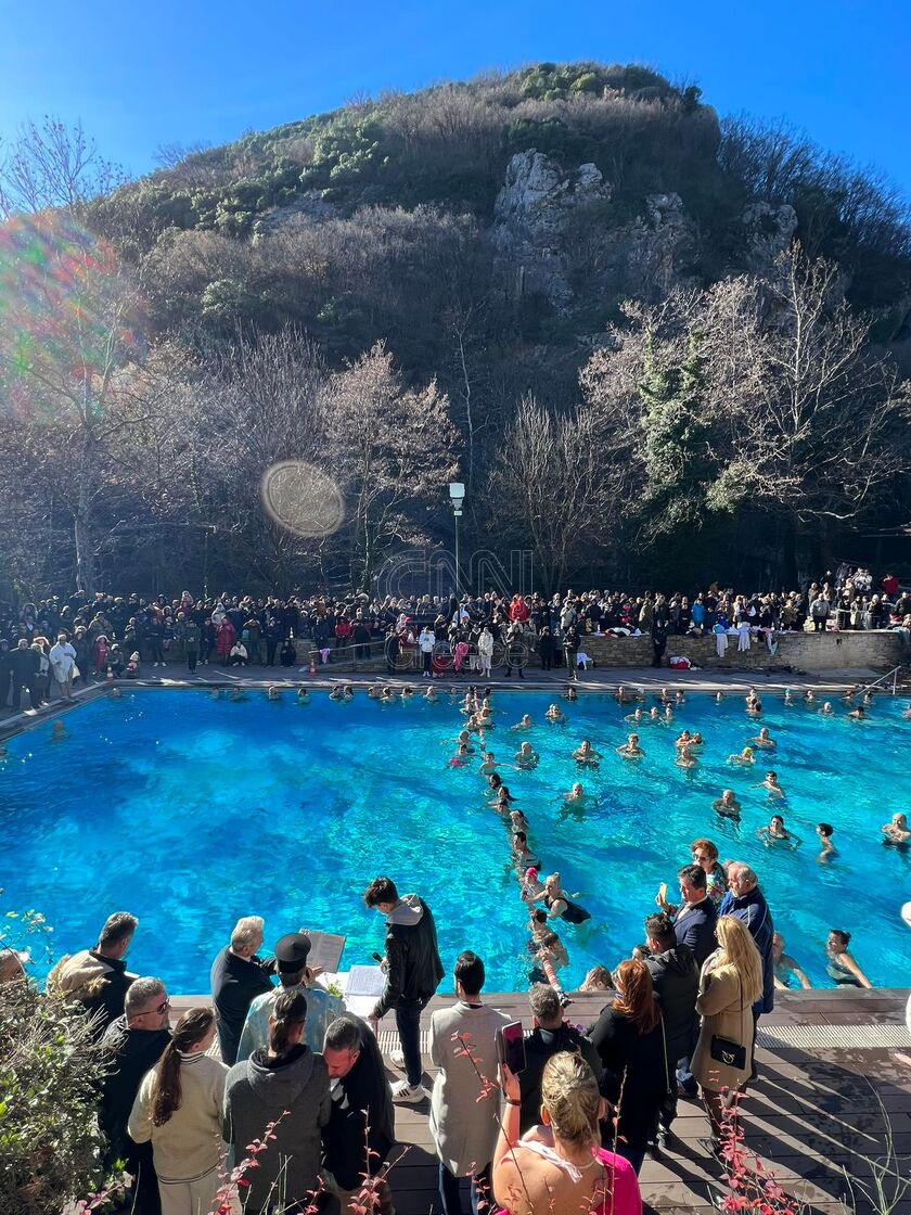 Πλήθος πιστών βούτηξε για να πιάσει τον Σταυρό στα Λουτρά Πόζαρ.