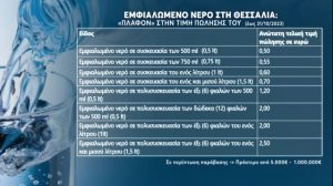 Συγκεκριμένα, για τις επιχειρήσεις κάθε είδους που διακινούν εμφιαλωμένο νερό καθορίζεται η εξής ανώτατη τελική τιμή: