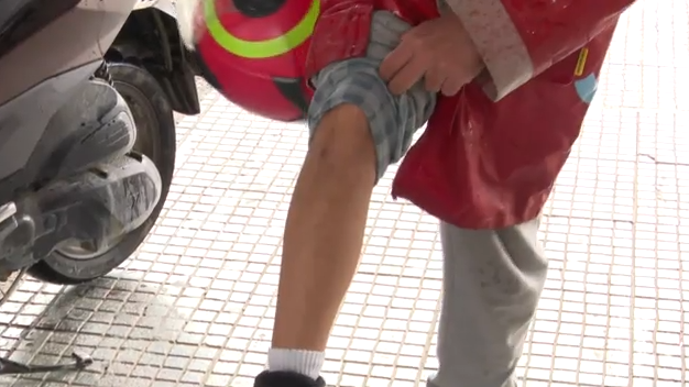 Το κράνος και το προστατευτικό μπουφάν φαίνεται πως έσωσαν τον διανομέα, που τραυματίστηκε ελαφρά.