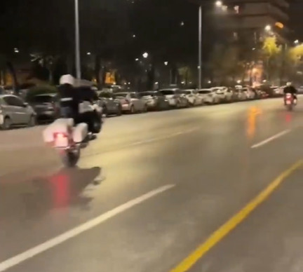 Ο ένστολος αστυνομικός με την μηχανή υπηρεσίας σημειώνεται ότι πραγματοποιεί παράβαση του ΚΟΚ.