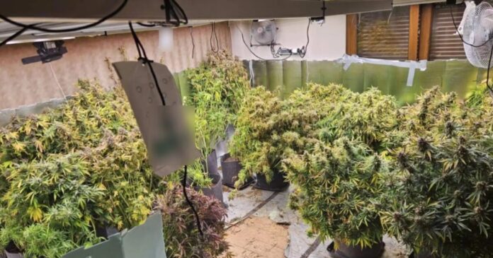 Κατά την έρευνα που πραγματοποιήθηκε στο συγκεκριμένο σπίτι, αστυνομικοί εντόπισαν και κατάσχεσαν πλήρη επαγγελματικό εξοπλισμό υδροπονικής καλλιέργειας, μεταξύ των οποίων πτυσσόμενα φωτιστικά, πάνελ λαμπτήρων LED, ανακλαστικά τοιχώματα, συσκευή εξαερισμού, αφυγραντήρα, υγρασιόμετρα, πλαστικά γλαστράκια, δοχεία με ειδικά λιπάσματα, καθώς και αντιασφυξιογόνο μάσκα. Παράλληλα βρέθηκαν ηλεκτρονικές ζυγαριές ακριβείας με υπολείμματα κάνναβης και συσκευασίες με σπόρους κάνναβης.