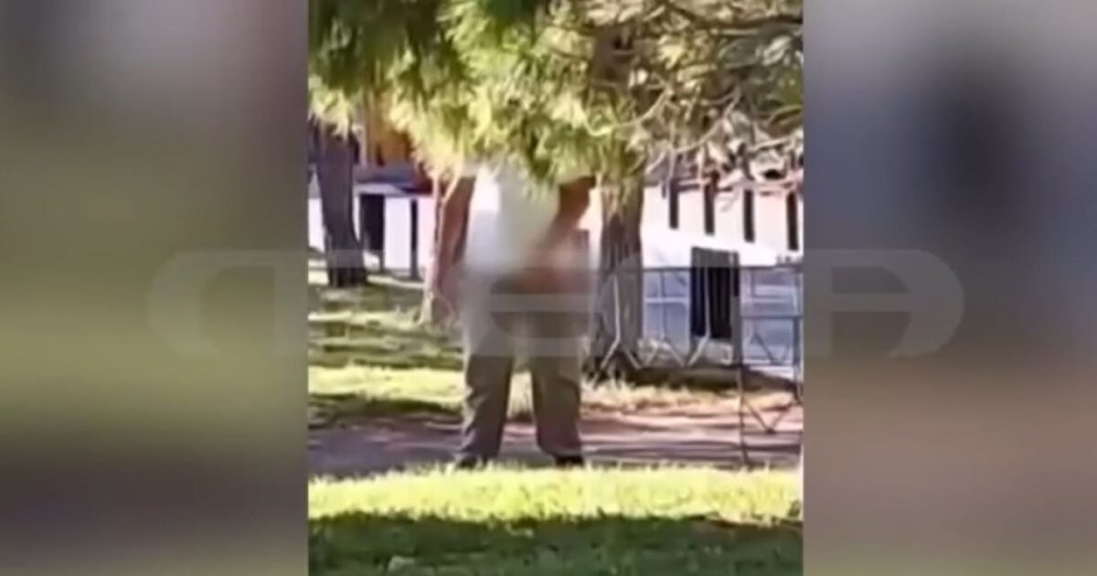 Βρίσκεται έξω από το 5ο λύκειο Θεσσαλονίκης, δίπλα στο Μέγαρο Μουσικής, όταν ο άνδρας που φαίνεται στο βίντεο, την πλησιάζει και κατεβάζει το παντελόνι του.